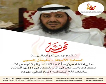 تتقدم جمعية بهاء بالتهنئة لسعادة الأستاذ/ سليمان الصبي على انتخابه رئيساً للجنة التنسيقية
